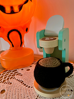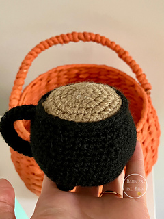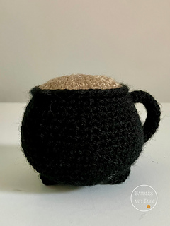 The pattern contains steps-by-steps instructions to crochet an adorable cauldron mug that is perfect for a spooky play kitchen. The pattern also contains pictures to help you along the way.