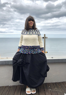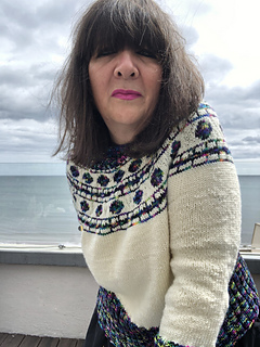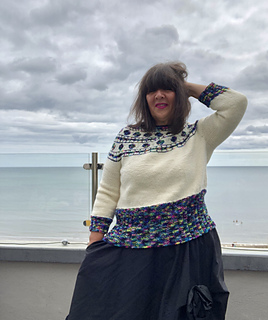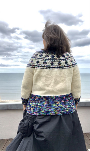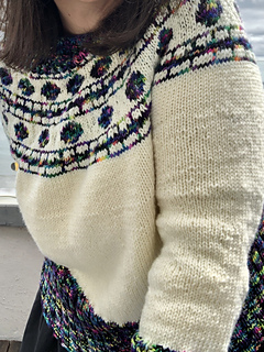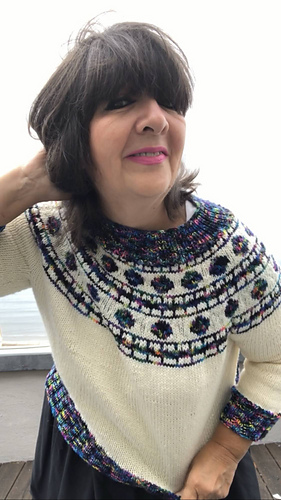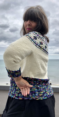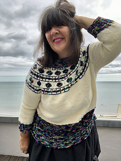 Spot Jumper is worked top down… with a splash of spots around the yoke.