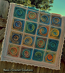 • Yarn used: Caron Blossom Cakes in “Tidepool”. (Green Squares)
