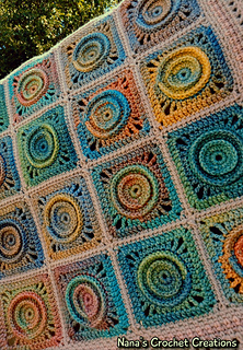 “This square works up quickly and looks very pretty when made with a self-striping yarn. (It can also be made with single colored yarn.) This square is perfect for STASH BUSTING and for making one of a kind makes.“ ~