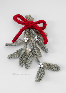 The Sprig of Mistletoe knitting pattern is a perfect Christmas knit! This fun and easy winter knitting pattern will the perfect pop of holiday cheer and it’s easy and fun to knit as well! This pattern includes instructions to knit one sprig of mistletoe with 3 branches of varying length that are tied together will a pretty red bow. Hang in your home and be merry!