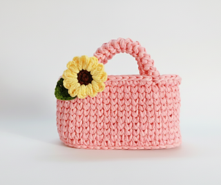 A charming and trendy crochet handbag featuring a sturdy construction and adorable sunflower embellishment. This pattern creates a spacious, structured bag perfect for everyday use or as a statement accessory.