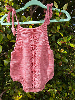 The romper is worked flat and from the bottom up.