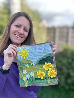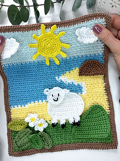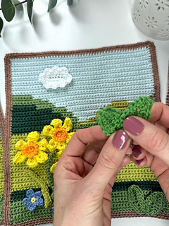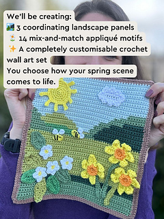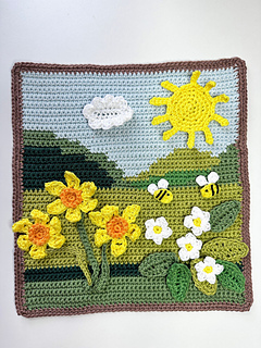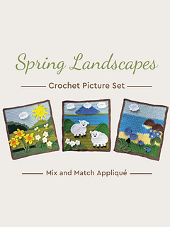The Spring Landscapes Crochet Picture Set includes three coordinating background scenes designed to sit side by side: