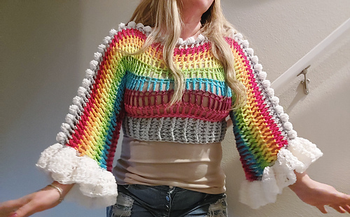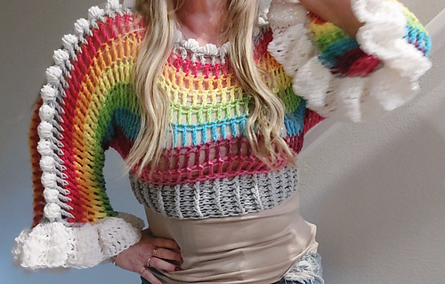 The Ruffle cuffs will resemble clouds, as well as the Bobble accents! This top is sure to bring joy and happiness to grey spring days!