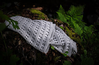 22 stitches and 28 rows = 10 cm / 4 inches in lace stitch on US 6 / 4 mm needles after blocking.