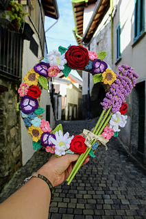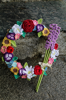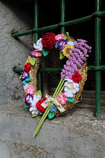 Spring Wreath is a crochet pattern designed to create a colorful floral wreath, perfect for decorating doors or walls.