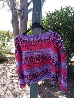 This jumper is perfect for the Spring and Autumn wardrobe. Made using DK yarn it is not too thick. The wide neckline gives it a lovely light and airy feeling. Just what you need for Spring weather.