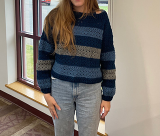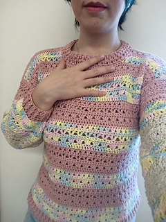 It is designed to be oversized and a loose fit. It is customizable to your own fit and colour tastes. This could be made into a cropped jumper should you wish.