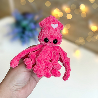 This No-Sew Squid Crochet Pattern is designed for fast, stress-free crocheting — no sewing pieces together! The curly tentacles are made directly while crocheting, giving the squid its playful, bouncy look.