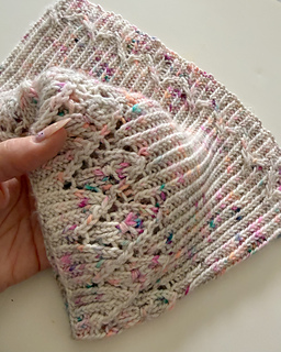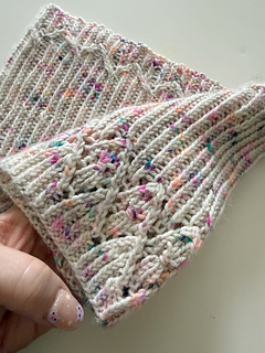This little cowl was so fun to make. It features a delicate lace design at the top and bottom that is both intuitive and interesting to do.