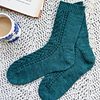 These socks were inspired by a sacred woodland valley in North Cornwall, featuring natural rock formations and waterfalls. They begin at the toe using Judy’s Magic Cast on, working lifted increases to get to the foot circumference. The foot is worked straight to the desired length, then the sole stitches are increased for the gusset. The heel turn is shaped using short rows and increases which are then decreased when you begin the slip-stitch heel. An 8-row repeat lace panel travels up the front of the sock to represent the waterfall. The socks are sized to fit a foot circumference of 17 (19, 21) (23, 24.5)cm / 7 (7 1/2, 8 1/4) (9, 9 3/4)in.