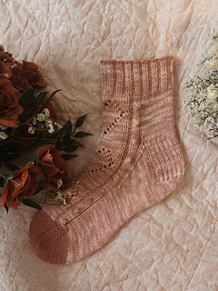 The St. Valentine’s socks are inspired by the sweet holiday for which they are named. This is a pattern for fingering-weight mid-calf socks with beautiful lace and bobble features. There are a few intermediate techniques, including Kitchener stitch and lace and bobble charts.
