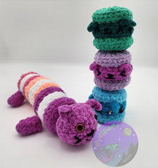The macaron cats are sweet, fluffy, squishy, and so much fun. One stacks up while the other is a fidget toy where the body parts rotate around so you can fidget all day. Make as many or as few macarons as you want and have a great time with this 2-in-1 pattern.