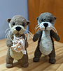 I used Lionbrand Scarfie in “Cream/taupe” (about half a skein) for one otter, and the lighter coloured otter was Bernat Super Value in “Honey” and Loops and Threads Impeccable in “Heather”