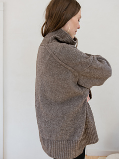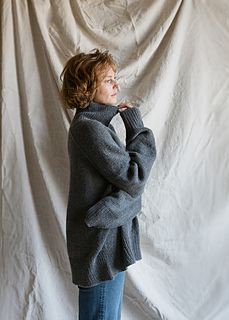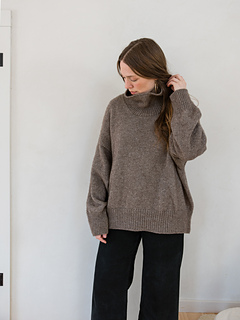 The Staple Sweater is designed to be a go-to piece in your wardrobe. It’s an oversized, drop shoulder, pullover sweater. The pattern features European shoulder shaping, optional bust darts, and modification options to make customization easy. It’s worked from the top down, working to shape the front neckline, and front and back underarm shaping. The body is then joined and worked in the round, finishing with 1x1 ribbing trim. The sleeves are picked up and knit, worked in the round and finished with 1x1 ribbing trim. The neck trim is picked up and worked in the round with 1x1 ribbing. All trim is finished with two setup rows and cast off using the tubular method.