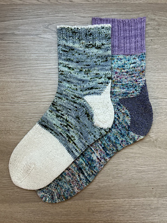The Star Socks utilize intarsia and the Samba Heel to create a star-shaped heel. The pattern is worked top-down in the round using 2 or more colors.