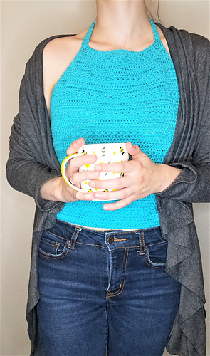 This fun garment is the perfect way to add a handcrafted element to your wardrobe. Pair this top with a cardigan in the cooler months, or wear it on its own in the summer. Made with a series of star stitch and half-double crochet stitch rows, this halter top has a secure but breathable fabric. The Star Stitch Halter Top is aimed towards the beginner to intermediate crocheter looking for a new challenge.