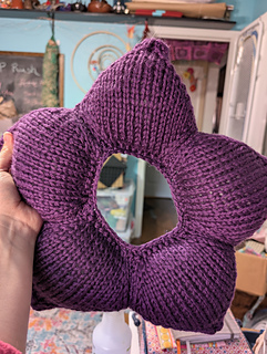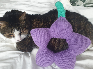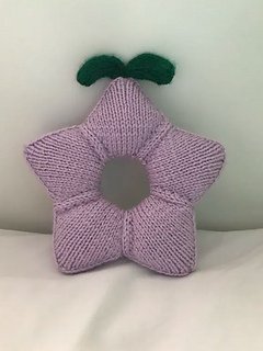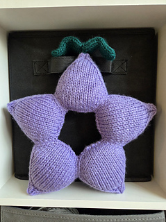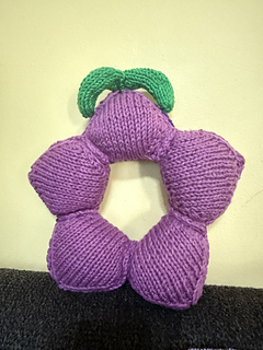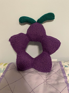 what you need for this project: purple yarn (main body), green yarn (leaves), straight knitting needles, a sewing/darning needle.