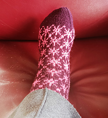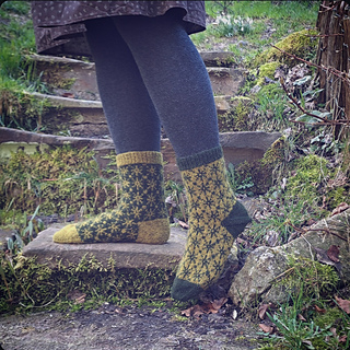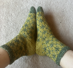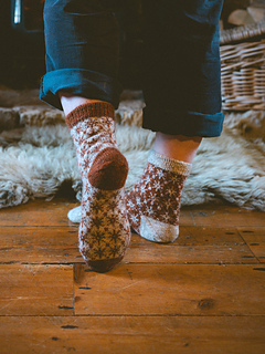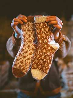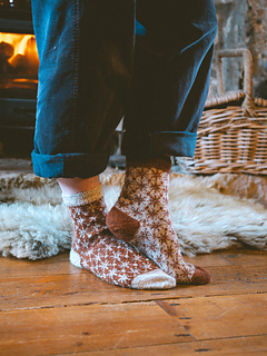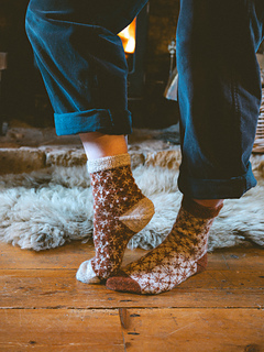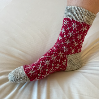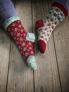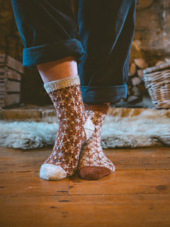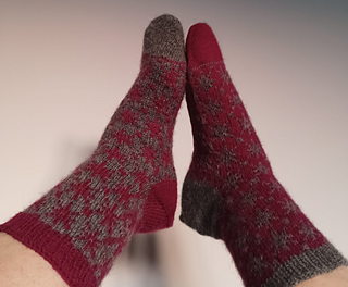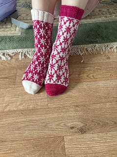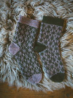 Finished sock circumference: 16 (18.5) 21 (24) cm / 6.5 (7.5) 8.5 (9.5) inches (unstretched after light blocking). Please consider that your socks need to fit with a negative ease of 5 - 10 % when choosing your size. These socks need less negative ease than plain stockinette or ribbed socks, since colourwork is usually less stretchy