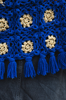 This poncho is constructed from motif squares with sparkly