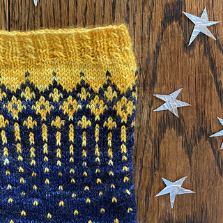 The colourwork aims to evoke twinkly stars on crisp winter nights, fireworks and festive lights.