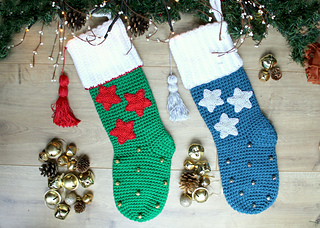 If you know you crochet at a looser tension you may wish to use a 4.5mm (US size 7) for the main body of the stocking and a 2.5mm (US size C/2) for the stars and trim.