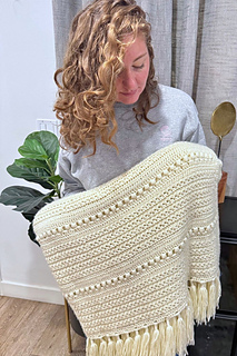 The Starlight Throw was designed to be the perfect cozy project. The textural combination of stitches is soothing to work up, making the project something you look forward to sinking into at the end of a long day. I wanted something relaxing to crochet without constant counting, but still interesting enough to feel engaging, so I combined star stitches, puff stitches, and simple double crochet rows to create a balanced, modern texture. Working in a soft neutral palette let the stitches take center stage, giving the blanket a cozy depth without fussiness. The result is a very approachable project that grows beautifully section by section, ideal for makers who crave both comfort and simplicity.