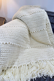 For the featured Starlight Throw, I used Loops & Threads Impeccable yarn in the shade “Cloud”. This acrylic worsted weight is easy to work with, affordable, machine washable, and allows the stitch definition in this pattern pop. If you’d like to customize, you can substitute with any medium (4) worsted weight yarn.