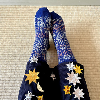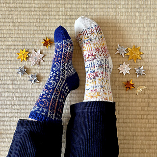 □ 履き口から編む、ラップアンドターンを用いた引き返し編みのかかと(ショートロー・ヒール)の靴下です。