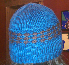 The star stitch really shines in 2 colors! Fun hat, worked in the round using only 1 color per row. Sized for an average adult woman but can be easily adjusted.