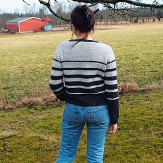 Worked from the top down. The yoke begins with shaping the neckline using short rows. Throughout the yoke, stitches are increased in each raglan seam at varying rates. The work is divided into one body and two sleeve sections. The body is worked straight. Along the sleeve, stitches are decreased to create a tapered shape. Edgings are added last.
