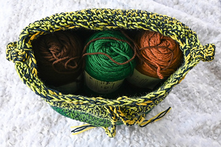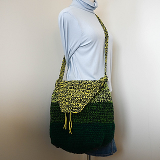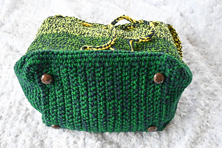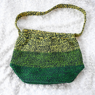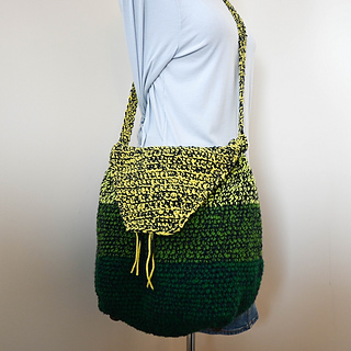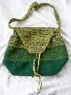 With larger hook and holding 2 strands of yarn together, 12 sc = 4” (10 cm) across. Exact gauge is not critical for this pattern. Stitches should be stiff with minimal drape to add shape to the bag.
