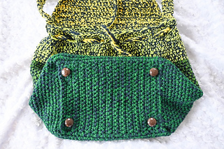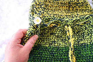 This easy crochet bag pattern is great for using up leftover yarn. This functional bag can be used as project bag (it holds four 6-7 ounce skeins!), a tote bag, a drawstring bag, or as a shoulder bag. The “bag feet” made from dome buttons are reinforced on the inside and minimize scuffs and snags on the bag bottom. This is the first pattern in the Fantastical BagtastiCAL Crochet Along with CAL Central Crochet.