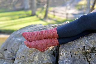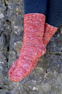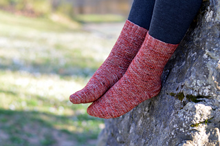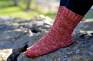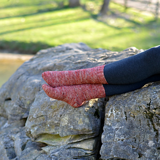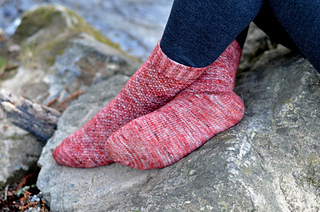 Steele Creek Socks have all-over texture that reminds us of the rocks in a creek bed. They are knit cuff-down with instructions for a heel flap and gusset, but any heel can be substituted. The texture continues on the top of the foot, ending with our favorite rounded toe.