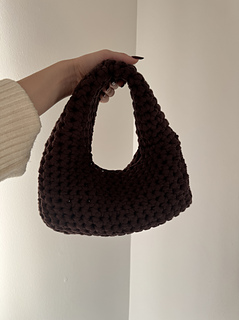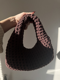 This pattern is made using two strands of ribbon yarn held together, which gives the bag its signature thickness, strength, and elegant look. By working with double strands, the bag becomes more stable and keeps its shape even when filled.
