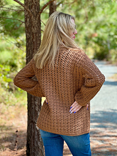 * Colorway Featured: Nutmeg – 6 (6, 7, 7, 8) (9, 10, 11, 12) skeins; approximately 1476 (1476, 1722, 1722, 1968) (2214, 2460, 2706, 2952) yards.