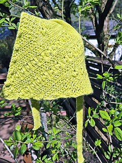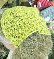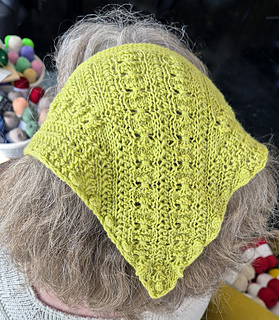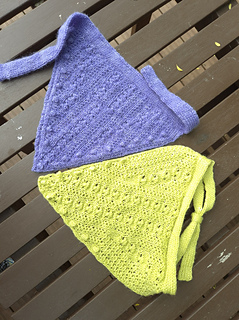 Stellaria Bandana is a little sister to previous Daisy Scarflet. is a hairband combined with a small triangular scarf. It’s started by double knitting the band/ribbon, then continued with the lacy scarf section. There is no lace on the wrong side other than the flower belts. There are two options for the lace and they are only charted.