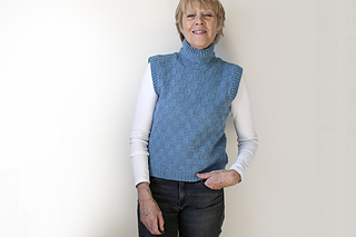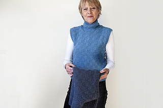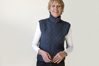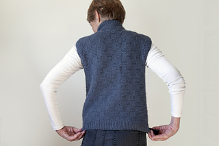 Introducing Stepping Out, an aran-weight, textured vest – or two vests, it seems, as I knit it twice with different yarns, just to see. This design is worked bottom-up, and in-the-round mostly, up to the armholes where front and back panels are knit separately and flat. Its Garter Rib stitch pattern, comprised of knits and purls, is easy to remember, with rows calculated to ensure an easy transition to the same Garter Rib of its cozy collar. One pattern, two yarns, two personalities – both favorites now, and fun. Enjoy!