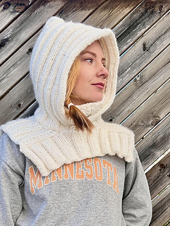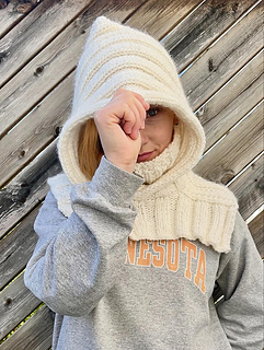 Stickad krage med luva. Denna stickas med resårstickning, varav kragen stickas i pärlresår.