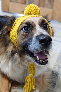 Is it love that makes us want to bedeck our pets in handmade goods? I have to think so. This is a hat I made for my sweet, stinky boy Willy. Hopefully your pup leaves it on their head long enough for a couple pictures!