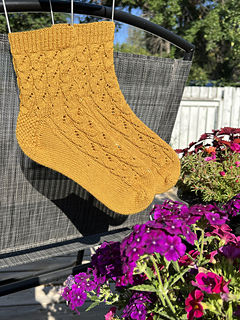 A gentle nod to nature, these lace socks feature a flowing stitch pattern that evokes leaves, vines, and natural movement. Knit from the cuff down, they include a modified eye of partridge heel flap and a delicate, approachable lace repeat. Perfect for springtime knitting!