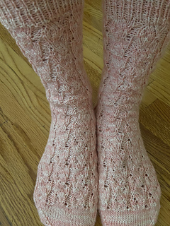 A gentle nod to nature, these lace socks feature a flowing stitch pattern that evokes leaves, vines, and natural movement. Knit from the cuff down, they include a modified eye of partridge heel flap and a delicate, approachable lace repeat. Perfect for springtime knitting!
