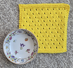 This design is the first of a series—twelve explorations of different stitch patterns throughout 2026—and the first of three projects focused on eyelets and lace. This month, we’re working simple eyelets staggered across a field of plain knitting. The pattern document includes general instructions for working the eyelet stitch pattern flat and in the round, as well as specific instructions for a sample square, a simple cowl and a bonus hat (not photographed). You’ll also find instructions for working this stitch pattern two different ways—with k2tog decreases or with ssk decreases.