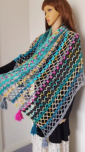 I used a number 3 light worsted/8 ply/double knit yarn for my version that is random colours. I used leftover yarn from different projects