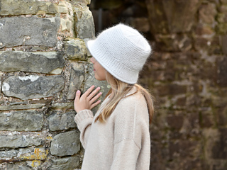 DESIGN OVERVIEW: The hat is knitted in Aran weight yarn on circular needles. The Brim of hat is knitted with two strands of yarn held together, body of hat is knitted with one strand of yarn. The hat is knitted in shape of panama hat in garter stitch.