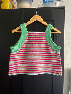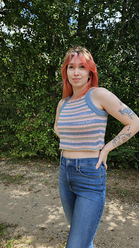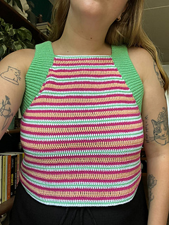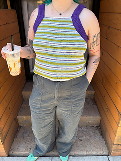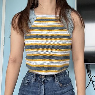 You can use the pattern to create your own Stitchy Top! The Stitchy Top features different size stripes and has 2 ribbed straps. This pattern is made to measure, which means it can be made with any yarn and hook size and you do not need to crochet the same gauge. It can be adjusted to any body type. You can also choose how long you want your straps to be, the top is worked top down and in one piece.