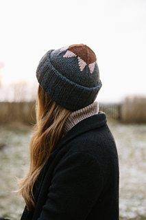The hat has a classic look with a folded brim worked bottom up. For extra warmth the brim is folded twice.