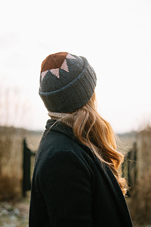 The Stjerne Hat was inspired by the beautiful Star Sawtooth block in quilting but the shapes are created using colorwork and decreases instead of patchwork. Stjerne means star in Danish.