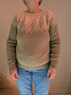 Height of yoke (from below neckband to underarm): 9(9 ¼, 9 ½, 9 ½, 9 ¾, 10, 10 ¼, 10 ½)”, 23 (23.5, 24, 24, 25, 25.5, 26, 26.5) cm - customizable